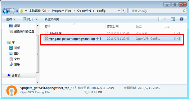打开 "C:\Program Files\OpenVPN\config" 文件夹,复制.ovpn 文件到此文件夹。